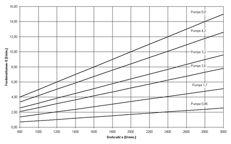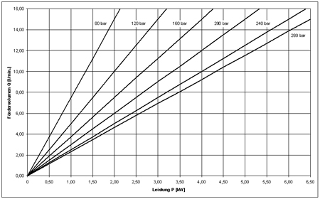 Die für den Einsatz notwendige Pumpen- und Motorkombination kann zum einen rechnerisch ermittelt werden, zum anderen aus den nachfolgenden Diagrammen entnommen werden.